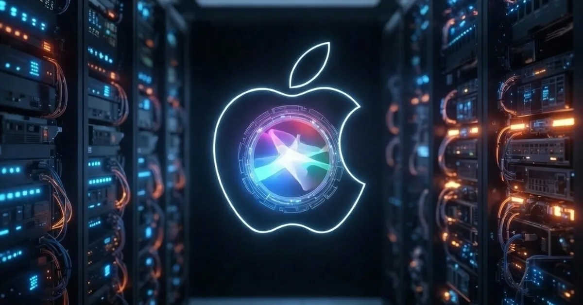 Apple Siri AI training on Google TPU chips visualization showing cloud infrastructure partnership between Apple and Google in 2026